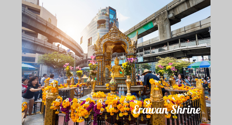 15.00 Travel to The Erawan Shrine is a benevolent deity and one of the most prosperous strongholds for incense in Thailand. The Buddha statue is splendid, with a height of 4 meters and four faces on the front, back, left, and right, representing compassion and joy, all with the same face and the same posture. After entering the fence, you can buy incense offerings on the right side, folded your palms together, sandwich the incense between your palms, and kneel. Leave the incense and make a wish, a wreath of three incense sticks clockwise to four sides, return to the first side and worship again. Finally, go to the left side of the water purification place and use a tin bowl to fill the water with clean water to clean the water tank and scoop the water.