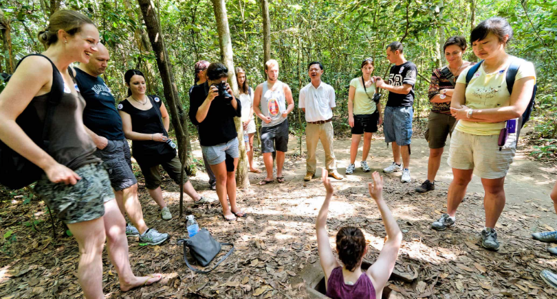 09:30 AM. Visit Cu Chi Tunnels In all, at least 45,000 Vietnamese men and women are said to have died defending the Cu Chi tunnels over the course of the Vietnam War. In the years following the fall of Saigon in 1975, the Vietnamese government preserved the Cu Chi tunnels and included them in a network of war memorial parks around the country. Visitors to Vietnam can now crawl through some of the safer areas of the tunnels, view command centers and booby traps, fire an AK-47 rifle on a firing range and even eat a meal featuring typical foods that soldiers living in the tunnels would have eaten.