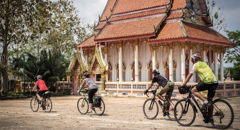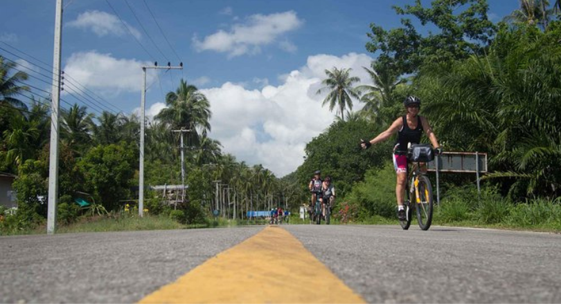 Pass By: Bike Tours Thailand This day trip Biking Tour combines small paved island roads with very little traffic as well as some off road dirt tracks through jungle areas and rubber trees. The distance covered is not excessive and anyone with a reasonable level of fitness will be able to enjoy this cycling tour.
